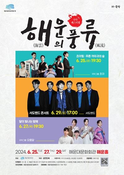 [한국소비경제신문=한창세 기자] 해운대문화회관(관장 전정희)은 오는 25일부터 29일까지 3일간 해운대문화회관 해운홀에서 특별기획 ‘H-국악 : 해운(海雲)의 풍류(風流) 국악 페스티벌’을 무대에 올린다.