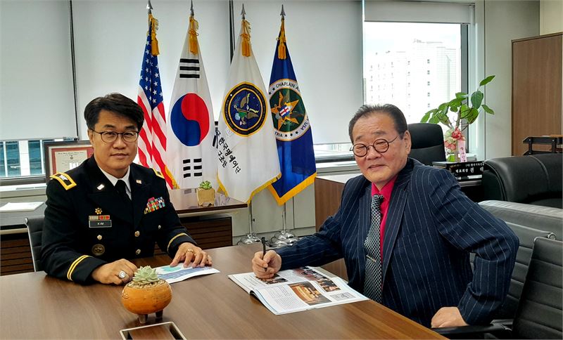 ▲ 한헌교 회장은 최근 청소년 대상 마약류 사용 증가와 마약중독자 치료 및 재활 문제 등 마약퇴치 사업에 함께 협력하기로 김 다니엘 미국 국가방위군 한국 명예 여단장(왼쪽)과 합의했다.