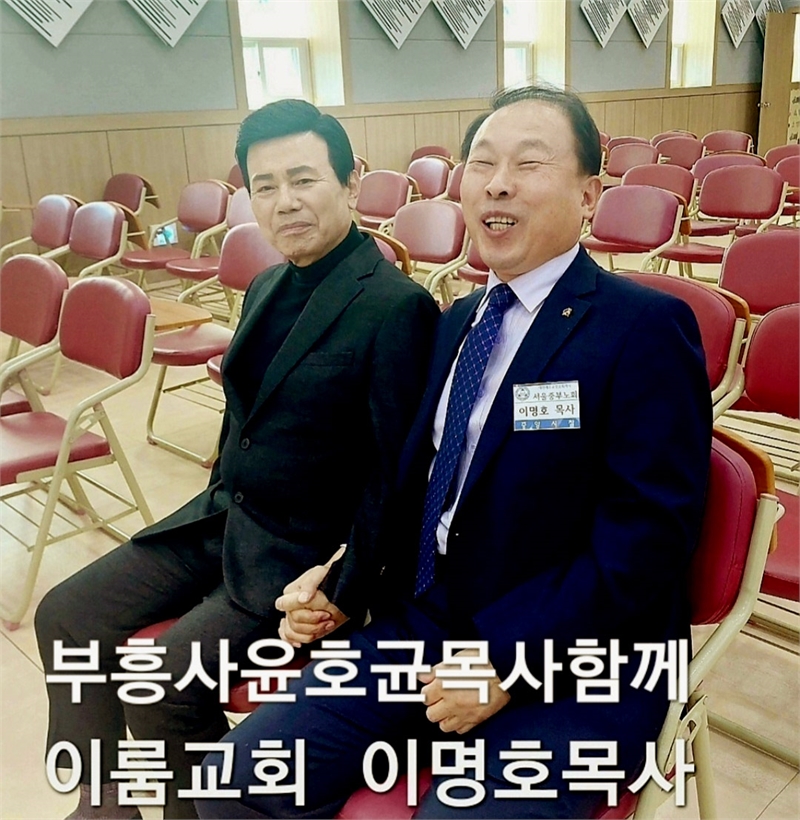 ▲ 윤호균 부흥 목사와 이명호 목사가 백석교단 서울중부노회 모임에서 함께 한 모습.