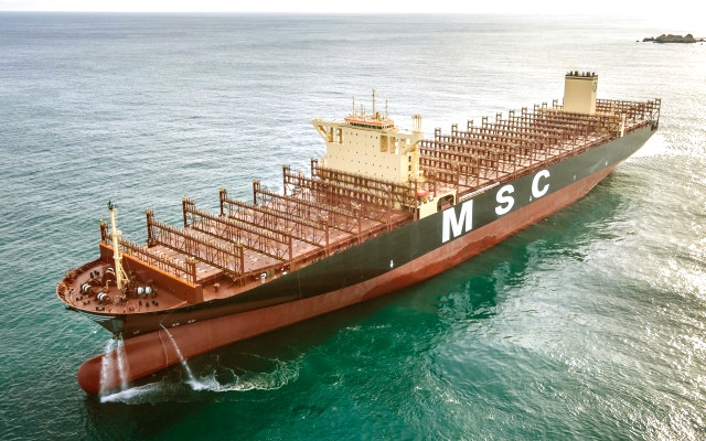 ▲ HD한국조선해양이 약 3조7000억원 규모의 선박 12척을 수주하며 2025년 첫 수주를 기록했다. 사진은 HD한국조선해양이 2024년 건조해 인도한 초대형 LNG 이중연료추진 컨테이너 운반선의 시운전 모습 [사진출처=HD한국조선해양]