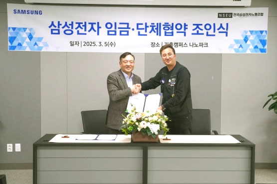 삼성전자와 전국삼성전자노동조합(이하 전삼노)은 5일 ‘2025년 임금·단체협약 조인식’을 진행했다.
