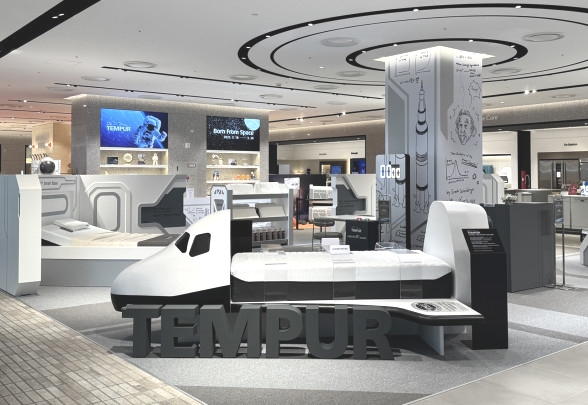 ‘Born From Space’를 주제로 한 이번 팝업 스토어는 미국 항공우주국(NASA·나사)에서 인정하고 미국우주재단(US Space Foundation)에서 인증한 유일한 매트리스 브랜드라는 정체성을 표현하기 위해 우주 정거장 콘셉트로 꾸며졌다.
