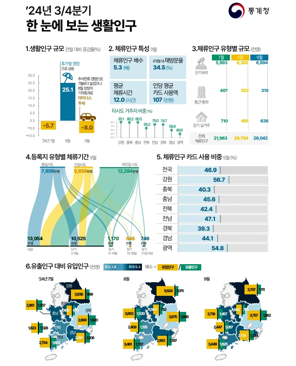 행정안전부-통계청, 2024년 3분기 생활인구 약 3,362만 명
