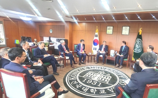 지난 4월 21에는 베트남국립농업대학교의 팜 반 끄엉(Pham Van Cuong) 부총장, 좌인(Bui Huy Doanh) 학장 등이 건국대 총장실을 방문해 건국대 원종필 총장과 함께 양 대학 간 현안 및 향후 협력 방안을 논의했다.