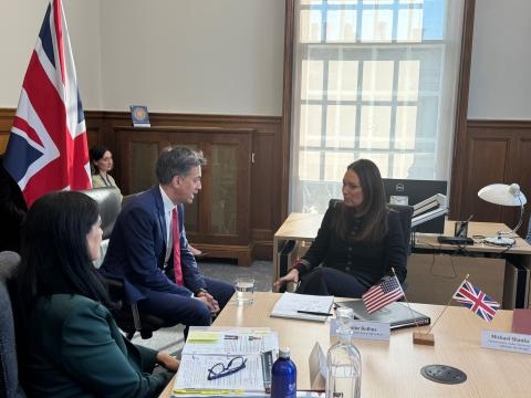 ▲롤린스 장관은 에너지안보부(DESNZ)를 방문하고 혼 에드 밀리밴드(Hon. Ed Miliband) 국무장관과 마이클 샹크스(Michael Shanks) 국무부 차관을 만나 영국 전역에 E10 의무화를 도입하는 방안을 논의했다. [사진=미국 농무부]